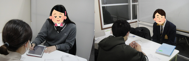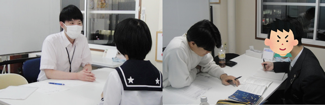 札幌市内の同じ高校出身で、北海道大学医学部医学科の大学生家庭教師(講師)を選考し、生徒の状況説明のほか、数学と英語をメインとした取り組み、Aクラスへ向けて演習を多く行うなどの指導方針の説明・打ち合わせを行い、私立中学3年生から指導をスタートしました(教室指導)。